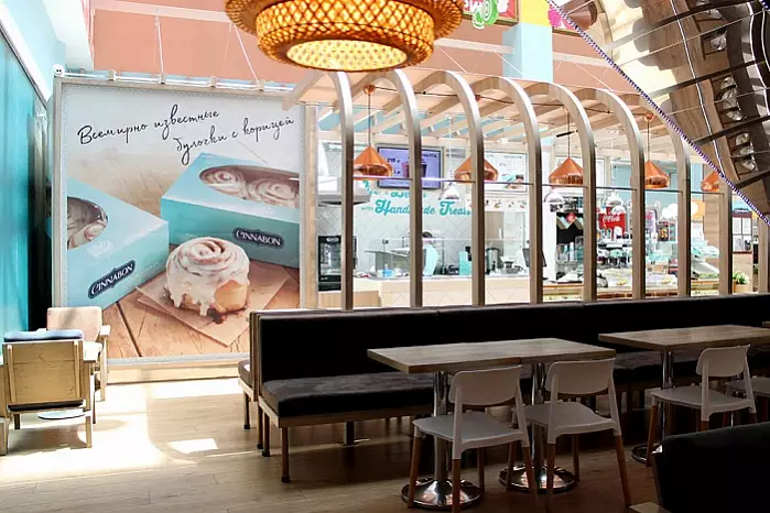 Булочка «Сinnabon» – это покрытый глазурью ролл с начинкой из корицы. В качестве дополнений к классическому рецепту используют шоколад, карамель, ваниль, орехи пекан и воздушный сливочный крем. Но, кафе-пекарня «Сinnabon» - это нечто большее, чем просто кондитерская. Гости заведения могут сытно пообедать, так как в меню кафе имеются сытные сэндвичи панини с беконом, тунцом или ветчиной на выбор.
